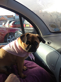 - Took Scamp to the groomers. Poor boy was shaking like a leaf when we took him in but the staff were lovely and he soon settled. He even got a free scarf saying 'My mummy loves me' doesn't he look impressed lol.